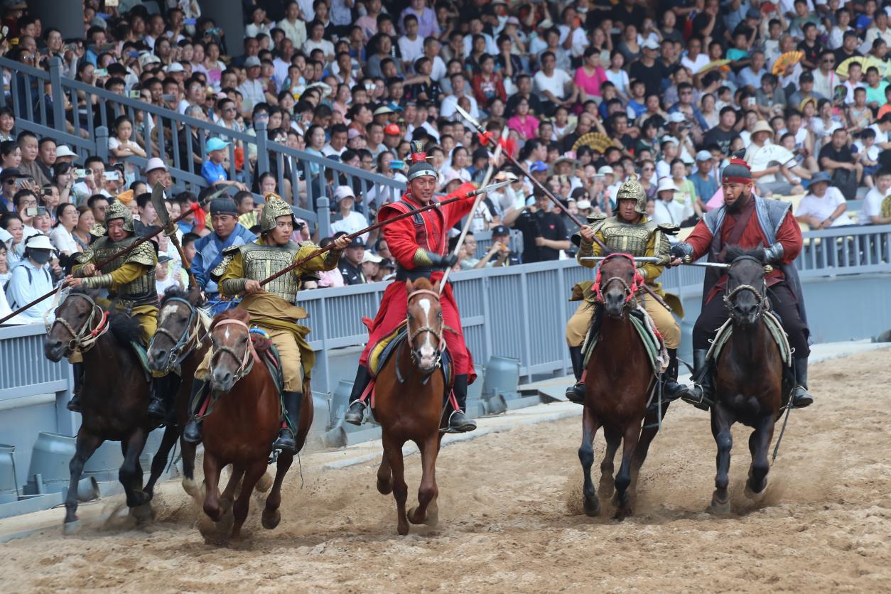 清明上河园逐渐形成大型剧目震撼化、中型剧目精品化、小型展示剧目景观化的表演体系,在静态的宋式建筑和园林景观中,通过演艺活化了历史,赋予了人文景区忠于历史又高于历史的不一样的灵魂温度。图为清明上河园大型实景演出《岳飞枪挑小梁王》剧照。(开封市文明办供图)