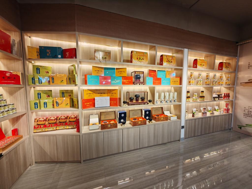 图为文旦柚深加工产品展示柜。新华社记者陈弘毅 摄