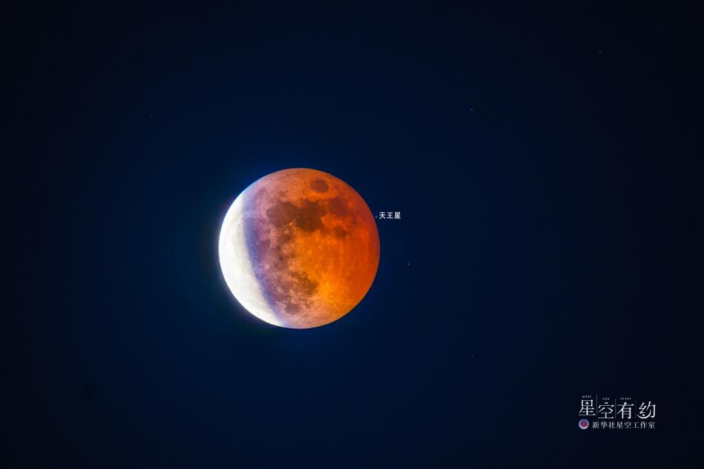 云南星空摄影爱好者张钊海2022年11月8日在云南昆明拍摄的月偏食与天王星“同框”。(本人供图)