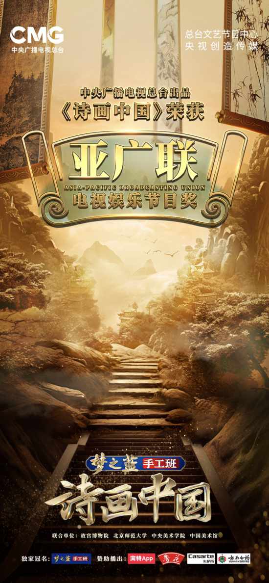10月31日,第60届“亚洲—太平洋广播电视联盟奖”颁奖典礼(简称“亚广联”)圆满落幕,由中央广播电视总台文艺节目中心与央视创造传媒有限公司联合打造的大型文化节目《诗画中国》荣获“电视娱乐节目奖”。
