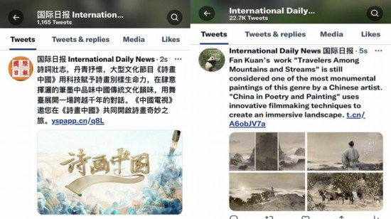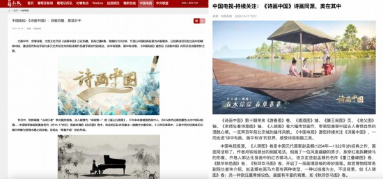 同时,《诗画中国》在传播上也达到了节目内外的同频共振,成功让华夏文明辐射至全世界。在美国《国际日报》网站和社交媒体账号、法国《欧洲时报》网站和App、俄罗斯《龙报》网站和世界头条App“北极熊视野”账号等华文新媒体平台上,节目相关内容广受欢迎。在2022“非洲伙伴”媒体合作论坛上,《诗画中国》还作为总台优秀作品进行了展示。日前于戛纳影节宫举办的第六届WISDOM in CHINA中国原创节目模式推介会上,节目更是以中国原创之名,登上了Mipcom主舞台。