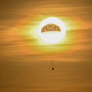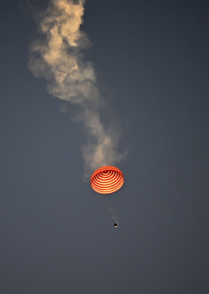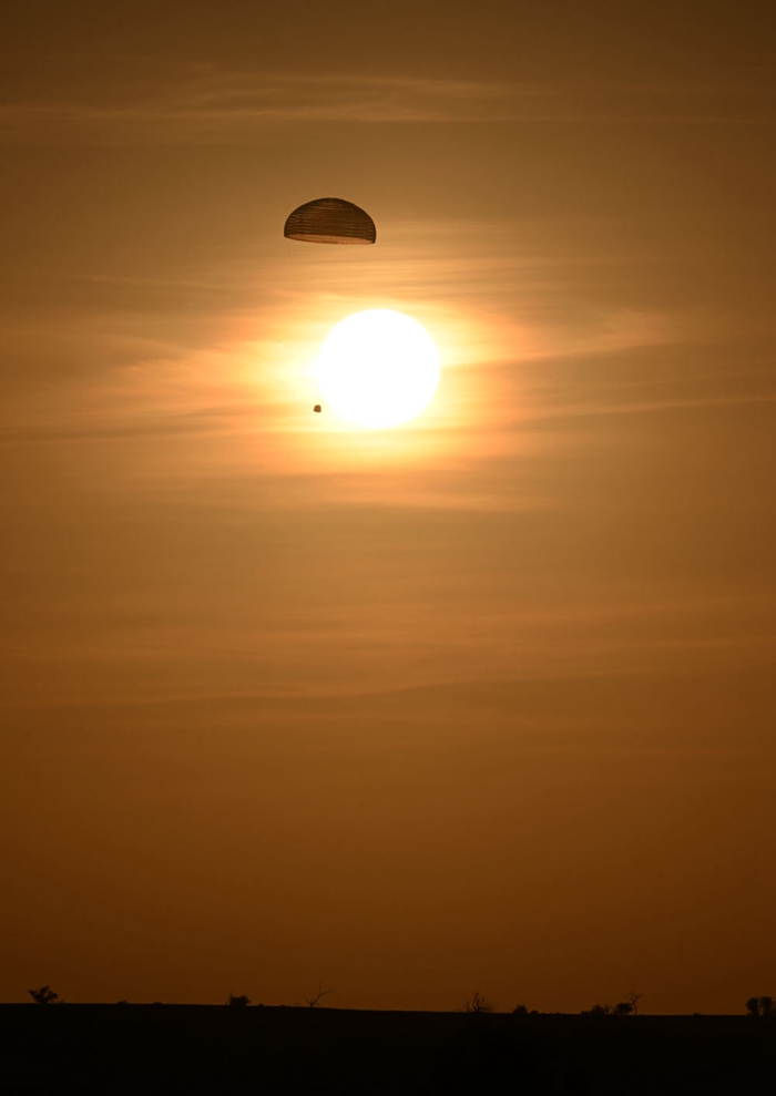 清晨,天已大亮。“嘭”地一声,天空中传来返回舱开伞的声音。