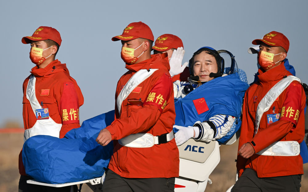 10月31日,神舟十六号载人飞船返回舱在东风着陆场成功着陆。