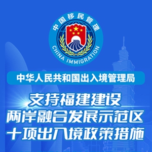 新华社北京11月6日电(记者任沁沁)记者6日从中华人民共和国出入境管理局获悉,为深入贯彻落实《中共中央 国务院关于支持福建探索海峡两岸融合发展新路 建设两岸融合发展示范区的意见》,该局紧扣两岸融合发展示范区建设规划,聚焦台胞台商台企所需所盼,研究出台十项出入境政策措施(以下简称“十项措施”),并将于2024年1月1日起实施,进一步促进闽台人员往来、便利台胞在闽居住生活,深化两岸各领域融合发展。
