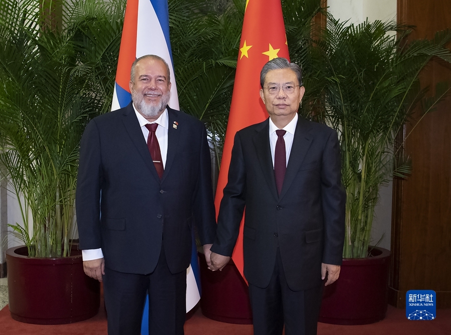 11月6日,全国人大常委会委员长赵乐际在北京会见古巴总理马雷罗。新华社记者 李涛 摄