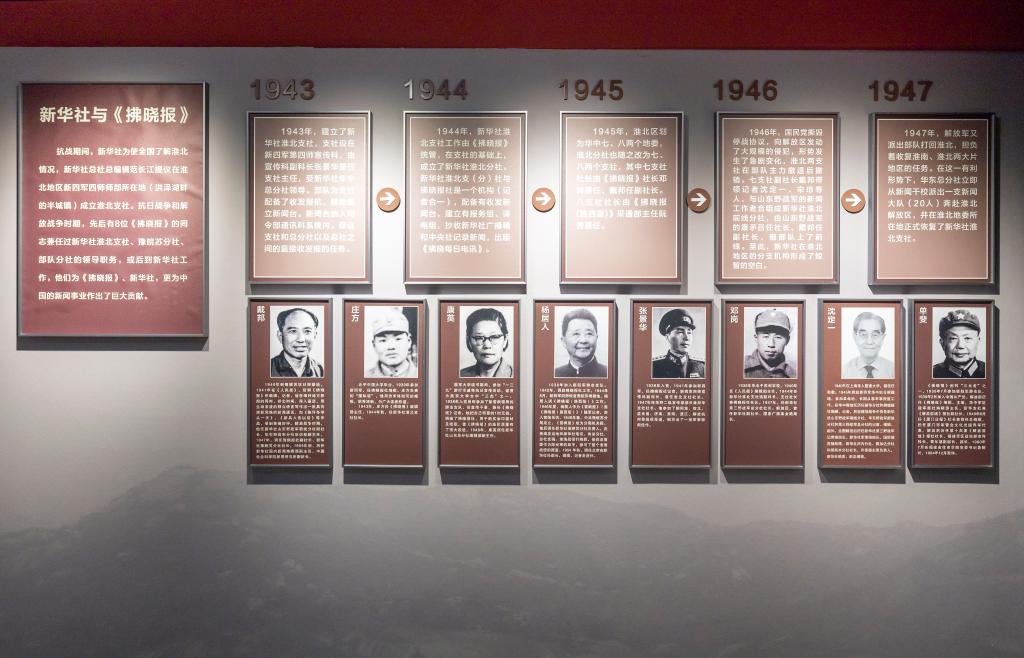 走进《拂晓报》的报史馆,上下两层约1600平方米的展厅深沉记录着这份地方党报85年的光荣历史和红色基因,其中一面墙更“镌刻”了一段特殊的缘分——“新华社与《拂晓报》”。