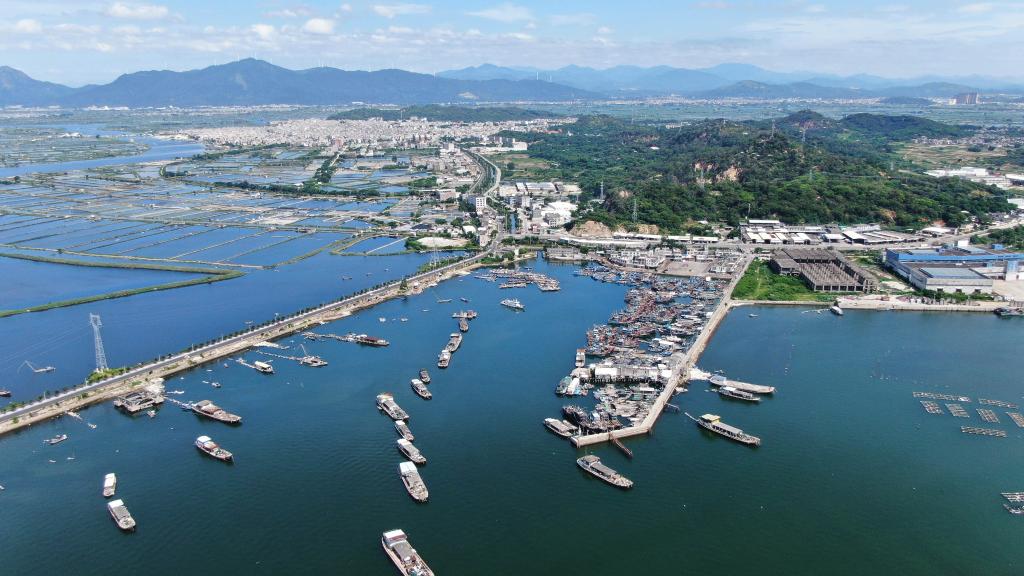 俯瞰广东省潮州市饶平县三百门渔港(7月28日摄)。新华社记者王瑞平摄
