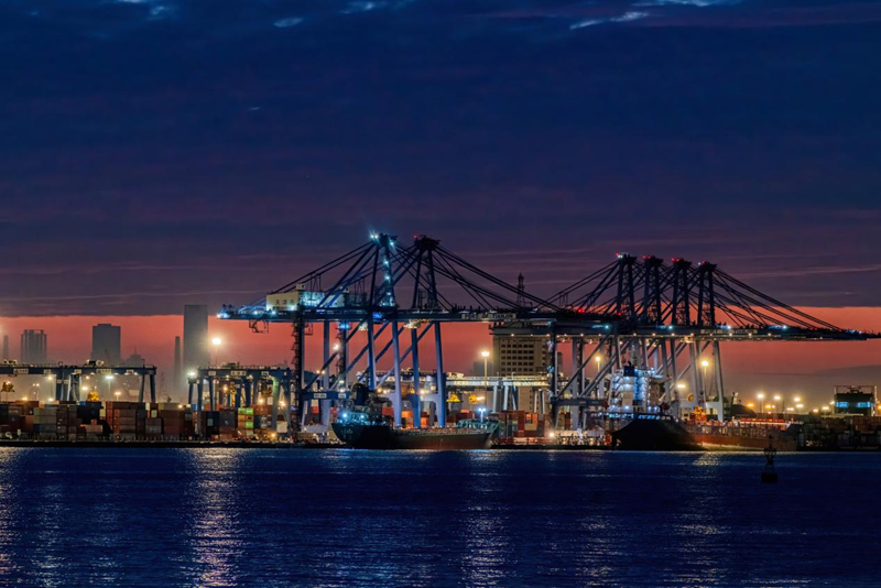 9月24日,夜幕降临,天津市滨海新区东疆湾天津港集装箱码头仍然一片繁忙。新华网 钟奕 摄