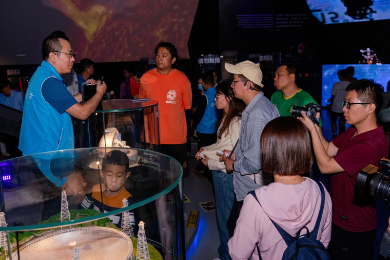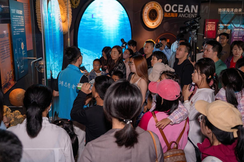 9月24日,天津市滨海新区国家海洋博物馆的志愿者正在为参观者进行科普讲解。新华网 钟奕 摄