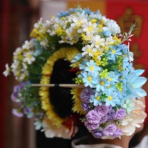 “日常簪花比较简单,戴一两圈花。碰上家里喜庆日和闽南传统民俗日,例如嫁娶、小孩周岁生日,蟳埔女都会簪满头花,四五圈花远看像个小花园。”蟳埔社区宣传委员庄群边簪花边说。