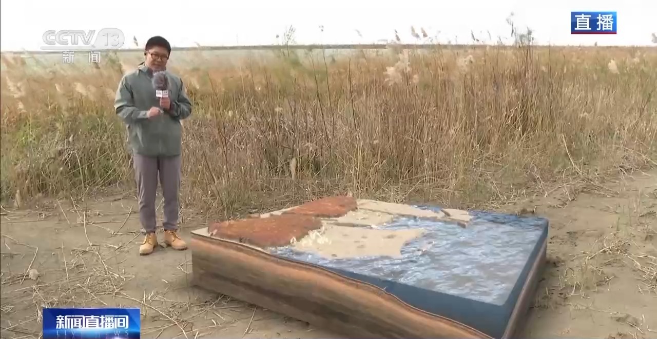 通过总台技术团队的AI虚拟技术可以直观了解一下,1万亩高潮位栖息地里面的地貌分为陆地、浅滩、深水。就是为了满足不同鸟的栖息的需求。比如,小短腿的鸻鹬类,鸥类黑嘴鸥等等,需要在陆地浅滩休息;一些大长腿的东方白鹳、白鹭等等,它们喜欢在浅水区休息,常常还会秀一秀金鸡独立的绝技。而在深水区,一些雁鸭类的候鸟就可以在里面浮游觅食。