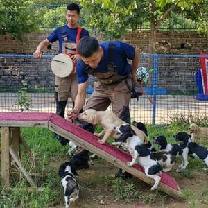 搜救犬繁育员正在训练幼犬。新华社记者 张钟仁 摄