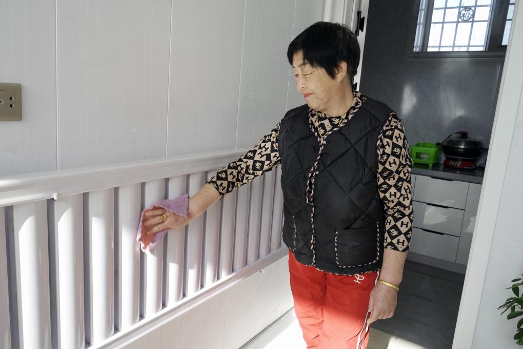 11月10日,内蒙古巴彦淖尔市临河区干召庙镇民主村村民徐凤花在擦拭暖气片。新华社记者 李云平 摄