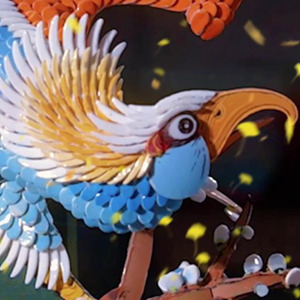 广东揭阳的普宁嵌瓷历史悠久,是国家级非物质文化遗产。嵌瓷艺人将瓷碗进行剪裁之后,把陶瓷片镶嵌、粘接、堆砌成人物、花鸟、虫鱼等各种造型,寓意吉祥如意、长寿富贵等,主要用来装饰祠堂庙宇、亭台楼阁等。