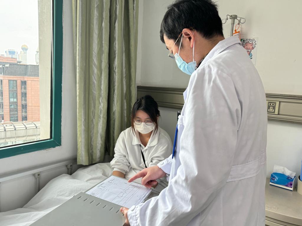 11月13日,徐子辉给糖尿病患者分析动态血糖。新华社记者 邓楠 摄
