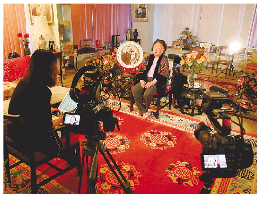 陈香梅接受中国国家图书馆中国记忆项目中心采访。 中国国家图书馆供图