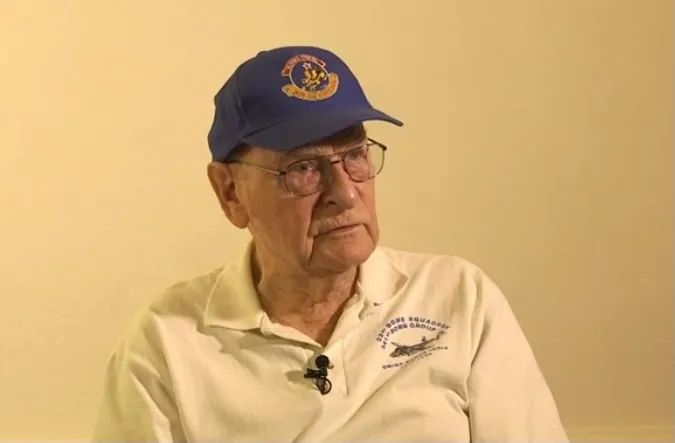 我也害怕过,在我第一次执行任务时。我们被送往缅甸中部,向敌军的飞机场投下炸弹。我们做到了,然后掉转飞机返回基地。从窗户看下去,许多飞机在下面。但这些是日本人的飞机,有战斗机、轰炸机。很快,其中一架战斗机飞了上来,就在我的飞机旁边,刚刚在火炮手的射击范围之外。我能看见那架战斗机,我不知道它要做什么。会袭击我们吗?还是在挑衅我们?这种奇怪的想法萦绕在我的内心。那时我感到,人生中有些事情是有价值的,有些事情是没有价值的。我想我已经看到了那些有价值的事情。于是,我发誓,我再也不为任何没有价值的事情而忧虑了。我认为我很好地遵守了这个承诺。那是一段很可怕的时光,我们的飞机是飞行编队里飞得最慢的,落到了整个飞行编队的尾端,一架日本飞机在周围虎视眈眈。哦,我的天哪!但我想上天一定眷顾着我,所以我现在还能在这儿,在我94岁的时候与你聊天。