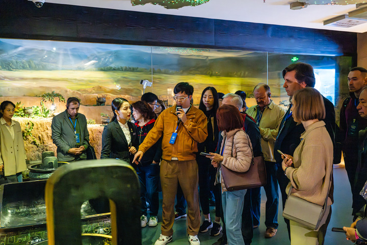 10月13日,欧亚主流媒体考察团在陕西省宝鸡市宝鸡青铜器博物院采访调研。新华社发(朱军强 摄)