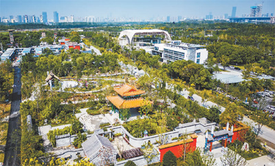 安徽合肥园博园设置38个城市展园,展示不同城市的文化特色和园林建筑风格,吸引市民、游客前来参观游览。解 琛摄(新华社发)