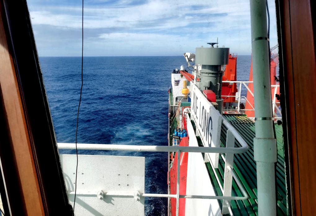 11月20日,“雪龙”号驶入南纬40度西风带的航行景象。(中国第40次南极考察队供图)