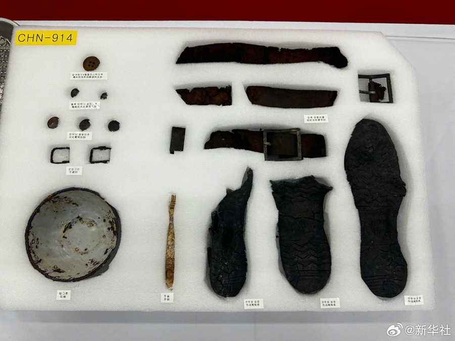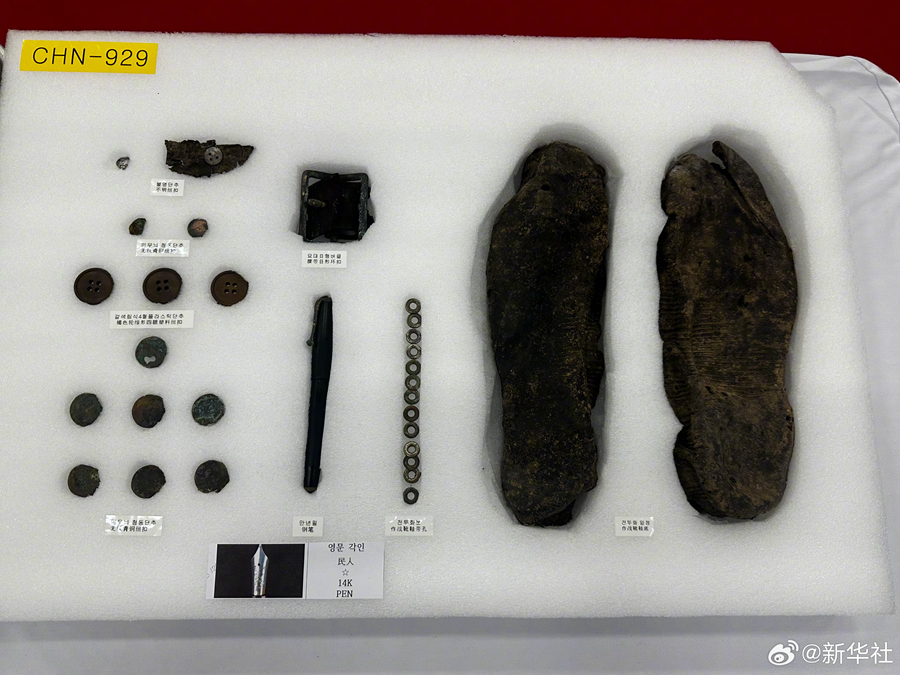 今天,第10批在韩志愿军烈士遗骸装殓仪式在韩国仁川举行。此次韩方共向中方移交25名中国志愿军烈士遗骸及遗物,遗物中一个军用水壶上,经识别刻有“孟广泰”字样。(记者:陆睿 姚琪琳)