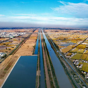 位于江苏淮安的苏北灌溉总渠(右)。新华社记者 刘诗平 摄
