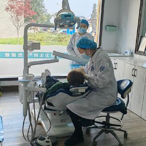 11月23日,在孝德镇卫生院,德阳市口腔医院的医生在给患者进行口腔疾病治疗。新华社记者董小红 摄