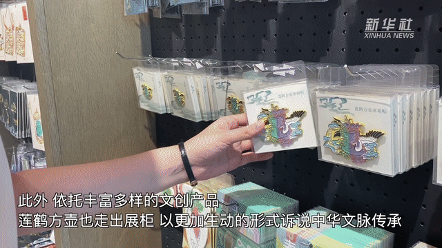 得益于中国文创产业的发展,莲鹤方壶逐渐走出“深闺”,与游客双向奔赴。在河南博物院的文创商店里,包含莲鹤方壶元素的产品有数十种,大到复制品摆件、3D立体拼图、考古盲盒,小到香囊、耳饰、徽章,创意十足,深受游客喜爱。