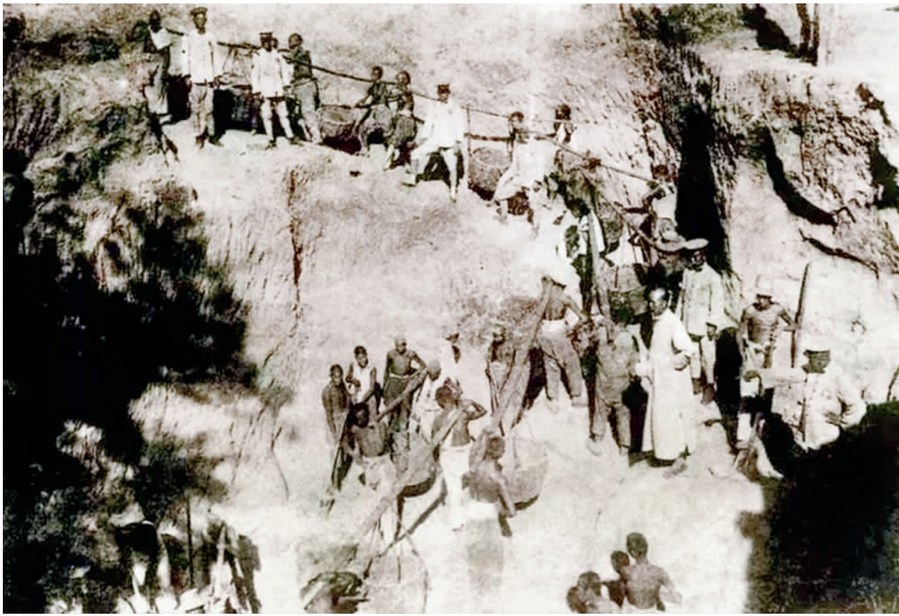 这是1923年新郑李家楼郑公大墓发掘现场(资料照片)。河南博物院供图