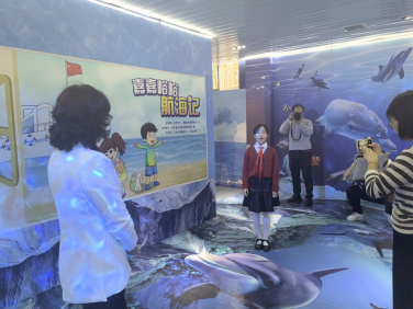 走进青岛独有的校级海洋科普馆,展厅以“嘉嘉峪峪航海记”为主题,以儿童“航海探险的海洋实践活动”为故事主线,以绘本的形式,通过3D场景、互动展板、标本展示等学生喜闻乐见的方式,将海洋馆变成了传承海洋文化、探索海洋科学的学习课堂和实践基地。
