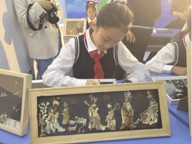 图为学生纸艺作品展示(11月26日摄)。新华网 韩建平 摄