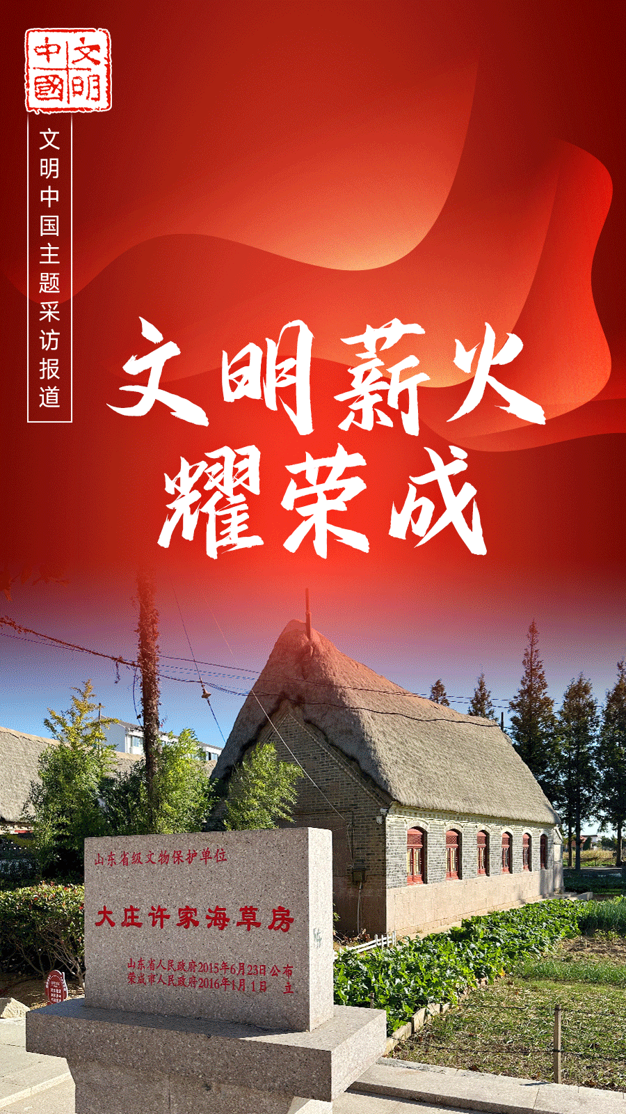 在推进新时代文明实践的过程中,荣成市着力打造十里古乡新时代文明实践展示带,覆盖东山、宁津两个街道辖区内的崮山前村、东墩村、东楮岛村、留村等10个村居,推动中华优秀传统文化融入社会主义核心价值观建设,大力倡树新时代乡风文明。有了厚重的人文基础,新时代文明实践在这里一呼百应、绘声绘色。