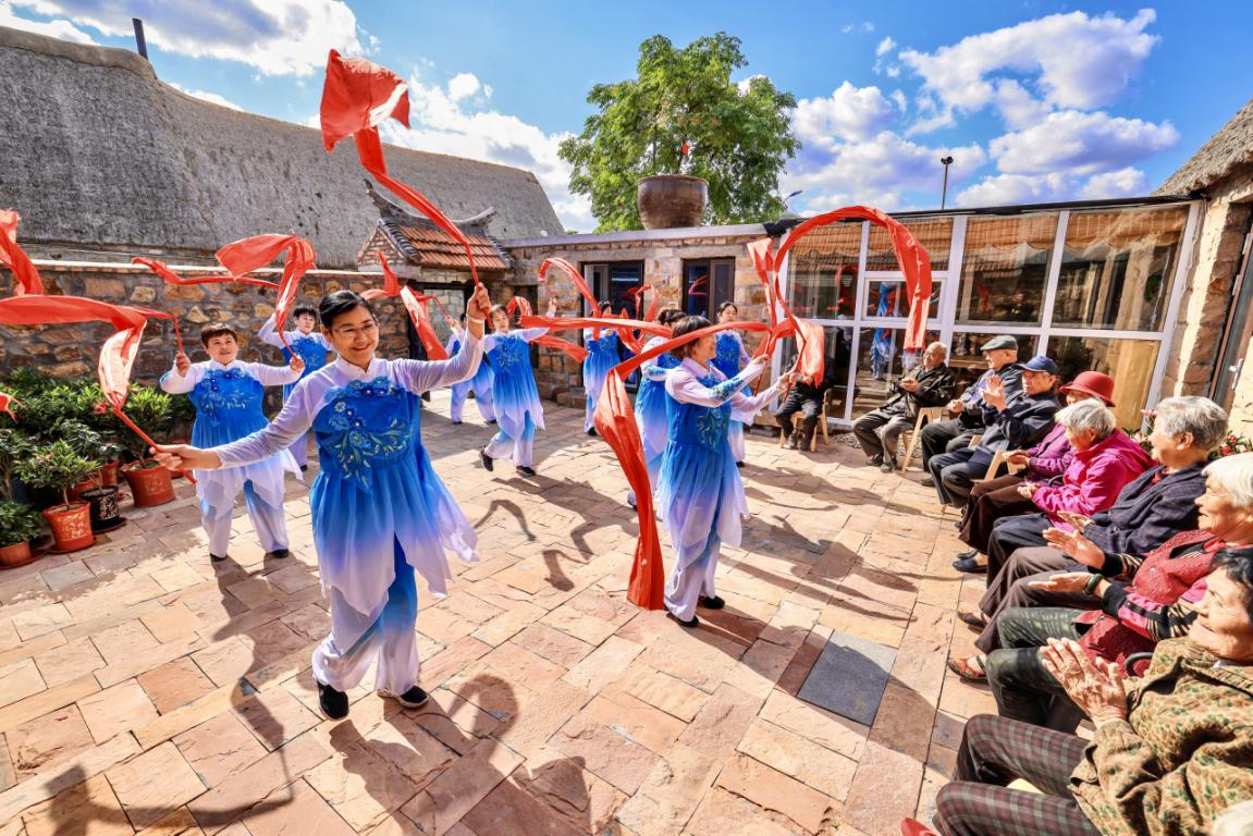 资料图:“暖心食堂”巧厨娘志愿者为老人们表演节目。(荣成市文明办供图)