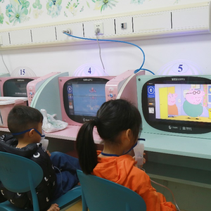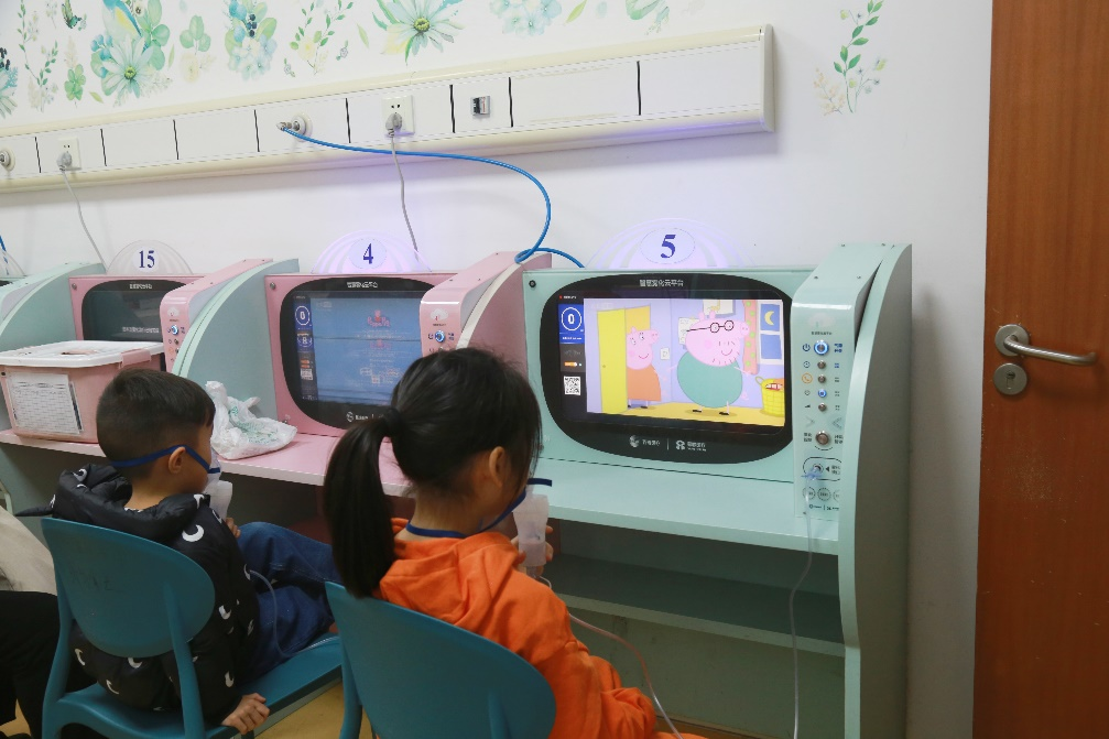 患儿正在雾化室进行雾化治疗。新华社发(张珺洁 摄)