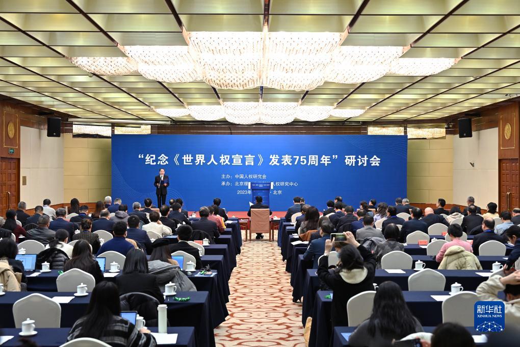 新华社北京12月4日电 中国人权研究会4日在京举行“纪念《世界人权宣言》发表75周年”研讨会。与会专家学者代表围绕《世界人权宣言》的内容精神、影响意义和新时代中国人权事业发展展开交流研讨,旨在弘扬全人类共同价值,推动全球人权治理朝着更加公平公正合理包容的方向发展。