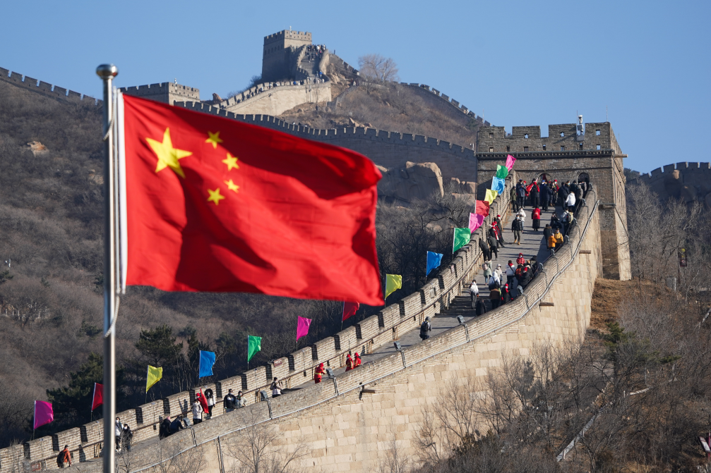 2023年1月1日,全国新年登高健身大会北京会场活动在八达岭长城举行,300余名市民代表和众多游客一起,登高望远,庆祝新年。新华社记者 鞠焕宗 摄