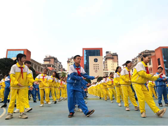 11月3日,达州市通川区七小新锦学校的学生正在做文明礼仪操。新华网发(罗园摄)