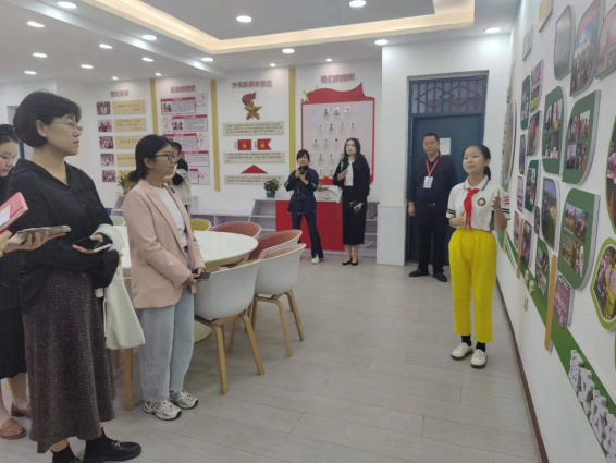11月3日,达州市通川区七小新锦学校的小讲解员正在为参观者介绍校园文化建设情况。新华网 李然 摄