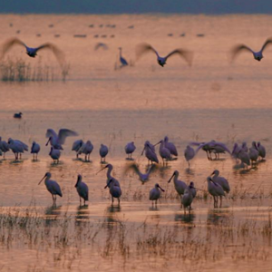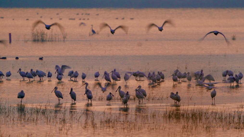 迁飞到条子泥湿地的琵鹭。(李东明 摄)