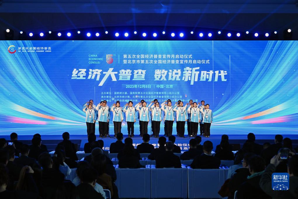 12月8日,与会者在启动仪式开始前在活动现场合影。当日,第五次全国经济普查宣传月启动仪式暨北京市第五次全国经济普查宣传月启动仪式在北京举办。 新华社记者 李鑫 摄