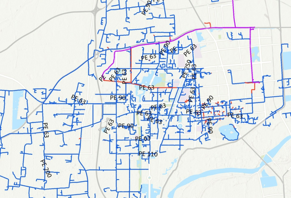 境外地理信息系统软件绘制的城市管网图