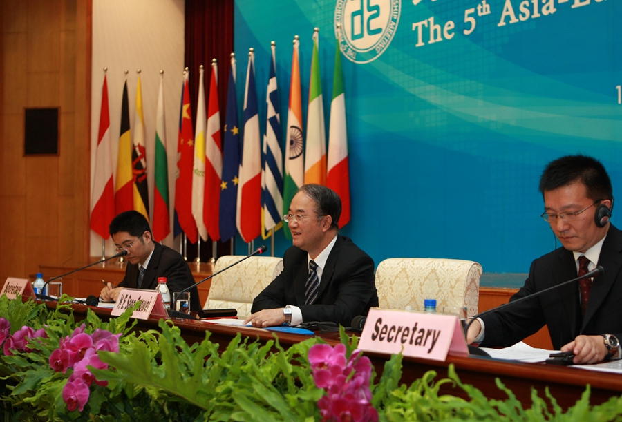 2008年6月19日,第五届亚欧议会伙伴会议在北京举行第一次全体会议。这是桑国卫同志主持会议。
