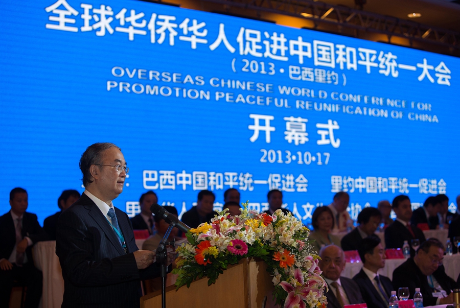 2013年10月17日,2013年全球华侨华人促进中国和平统一大会在巴西里约热内卢举行,桑国卫同志在大会开幕式上致辞。