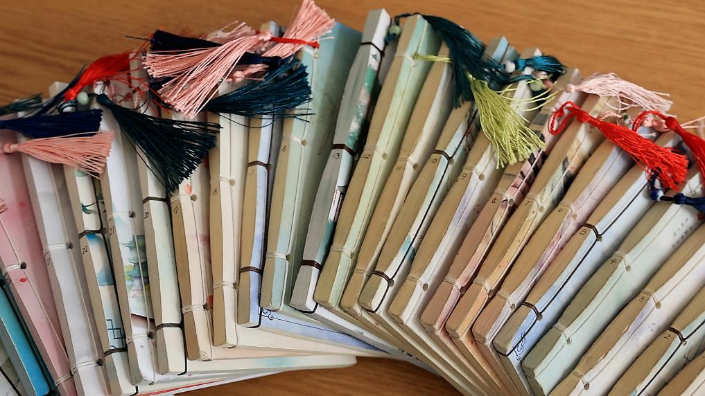 倪辉记满诈骗案例的笔记本。(受访者供图)