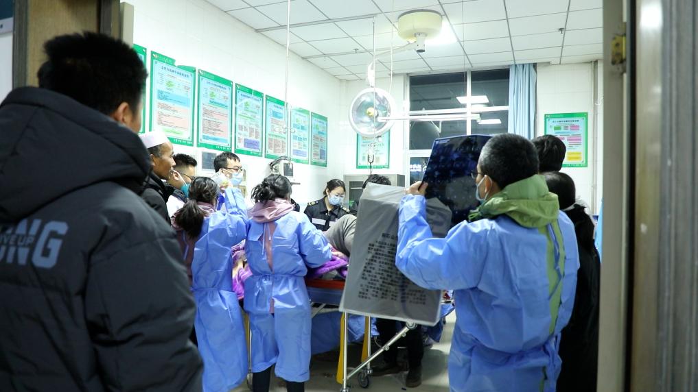 19日5时10分,新华社记者抵达甘肃省临夏回族自治州积石山保安族东乡族撒拉族自治县。积石山县人民医院是此次地震伤员救治前方“大本营”。记者刚跨进医院大门,紧跟着2辆救护车鸣笛呼啸而来。医护人员争分夺秒将担架车上的伤员快速推入门诊大楼。大楼内,早已等候的医疗组迅速接管,一边询问伤员病情,一边推着担架车进入急诊科留观室,做进一步诊断。