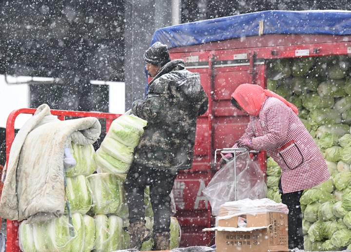 北京新发地农产品批发市场宣传部部长童伟说,“我们快速地组织商户通过电子大屏、广播和微信交流群,通知商户在产地做好蔬菜的收储,提高农产品供应的可控率。第二个是时刻关注天气情况,选好进京路线,确保运输鲜活农产品的车辆进京畅通。第三,我们通过储备库对土豆、洋葱、大白菜等9大品类的农产品进行轮换式的储存,一个星期调整一回,总的量是3000吨,有效地应对雨雪天气对市场供应的影响。”