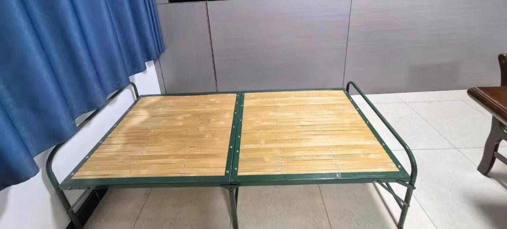 甘肃省临夏回族自治州积石山县大河家镇,是此次积石山6.2级地震受灾最严重的地区之一。记者12月21日在大河家镇派出所看到这样一张行军床——一尘不染的木床板,崭新的绿色铁支架,床上既没有床单也没有被褥。