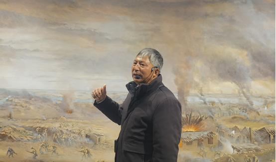 11月20日,“文明中国”主题采访报道组走进江苏省盐城经济技术开发区步凤镇。图为“中国好人”、五条岭烈士陵园陈列馆志愿讲解员卞康全正在讲解英雄故事。新华网 李雪芹 摄