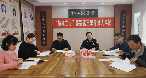 11月20日,“文明中国”主题采访报道组走进江苏省盐城市盐都区郭猛镇新时代文明实践所。图为“中国好人”、郭猛镇派出所民警孙益海在拱山议事堂里参加郭猛镇三季度好人评议会。新华网 李雪芹 摄