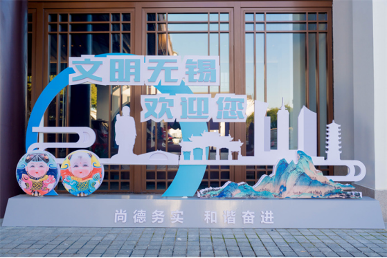 11月24日,“文明中国·看无锡”研讨会在无锡市举行。本次研讨会以“从无锡实践看共同富裕和城乡精神文明创建”为主题,旨在探讨交流共同富裕与城乡精神文明建设的实践经验和发展规律,进一步提升社会现代文明程度。图为会场外的欢迎展板。新华网发(戴可建 摄)